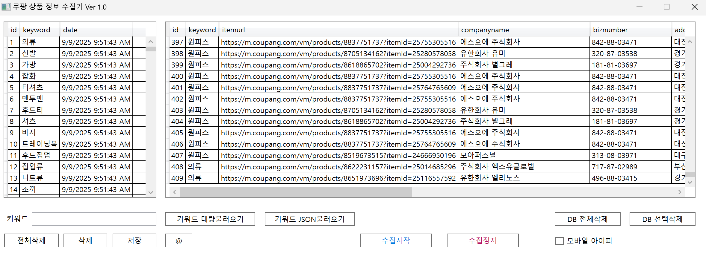 #쿠팡DB #상품정보수집 #쿠팡자동화